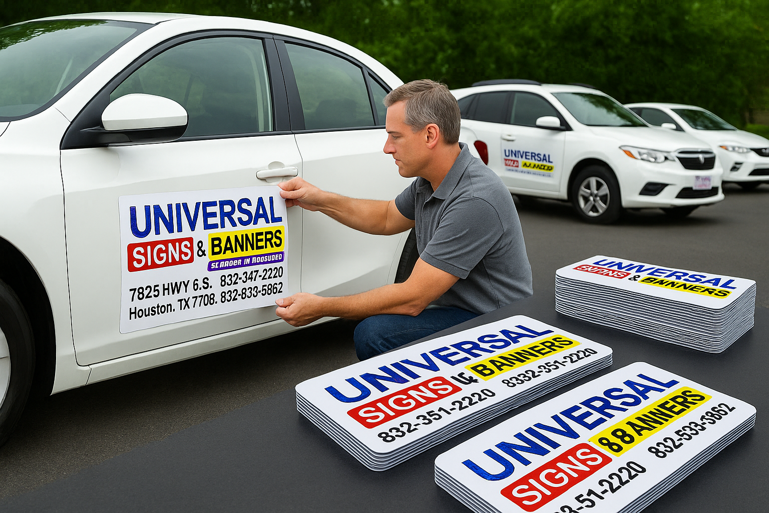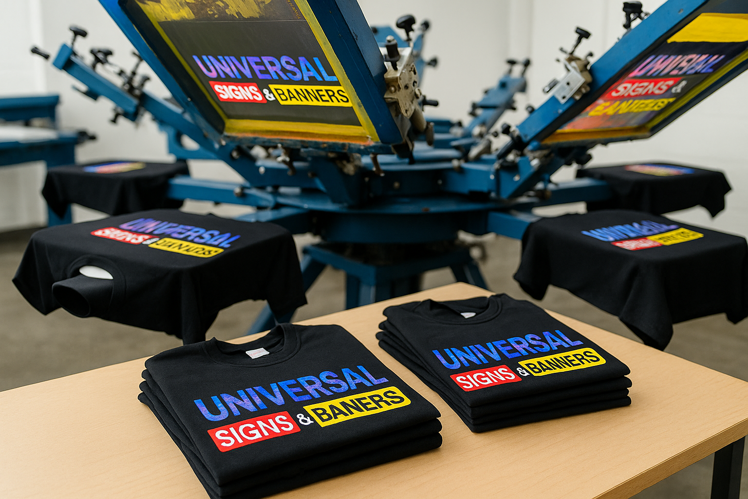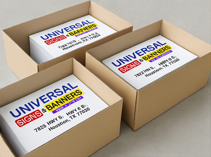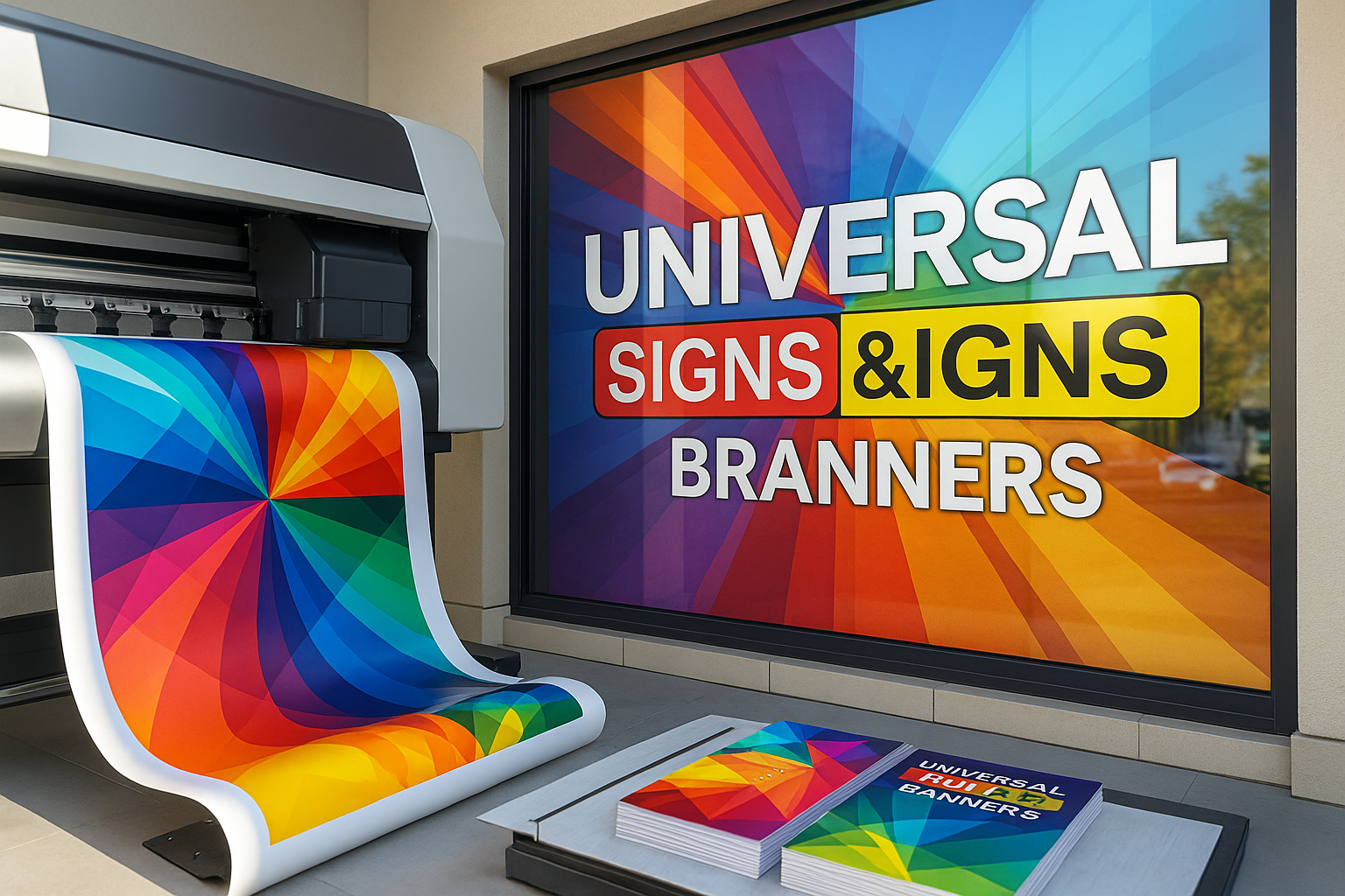 At Universal Signs & Banners, we provide a full range of printing services including business cards, postcards, door hangers, T-shirts, yard signs, flyers, magnets, brochures, window graphics, car magnets, car stickers, vinyl lettering, banners, vehicle wraps, and screen printing.